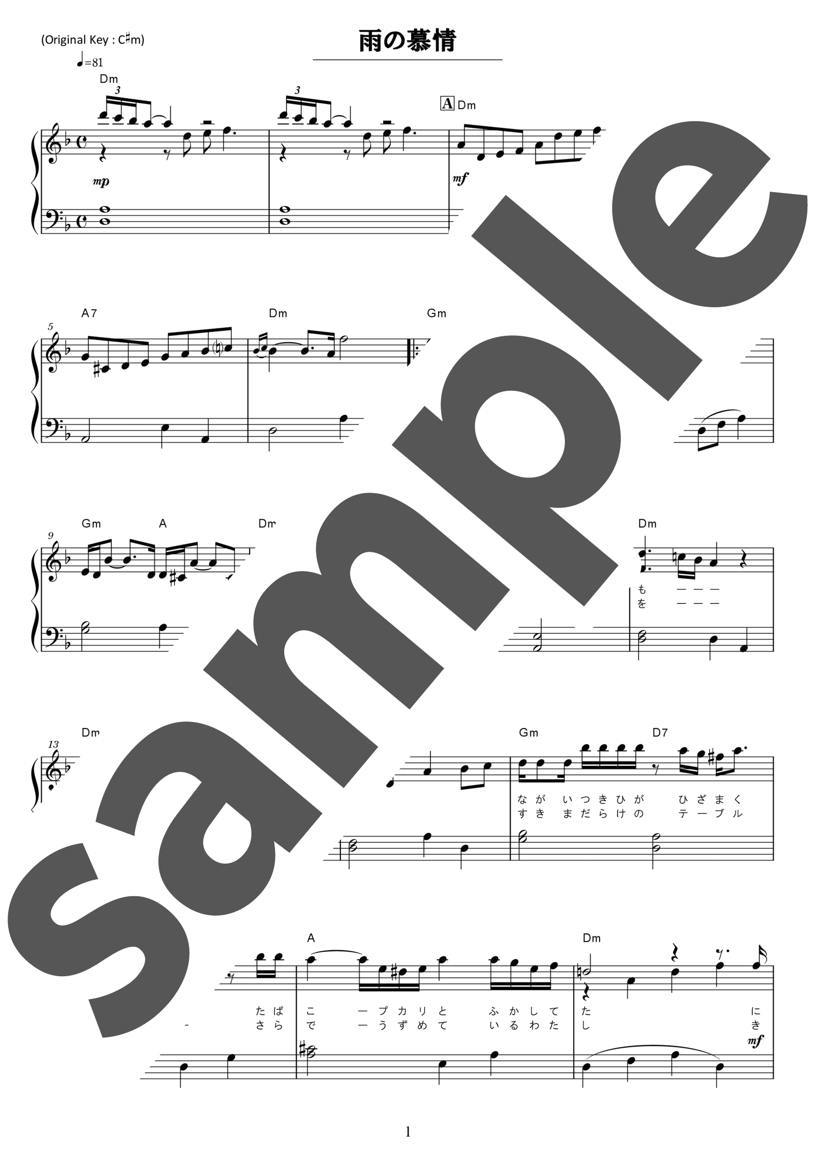 八代亜紀の代表曲「雨の慕情」。しっとりと降り続く雨の情景と、別れた相手への未練や切なさを重ねた歌詞が印象的で、「雨々ふれふれ、もっとふれ」というサビのフレーズは、多くの人の心に残る一節として知られています。こちらの初級アレンジでは、音数が少ない分、一音一音の表情がそのまま演奏の印象につながります。音の長さや強さを揃えながら、丁寧に表情を付けていきましょう。慣れてきたら、旋律と伴奏の音量差を意識し、メロディがしっかりと浮かび上がるようにバランスを整えましょう。