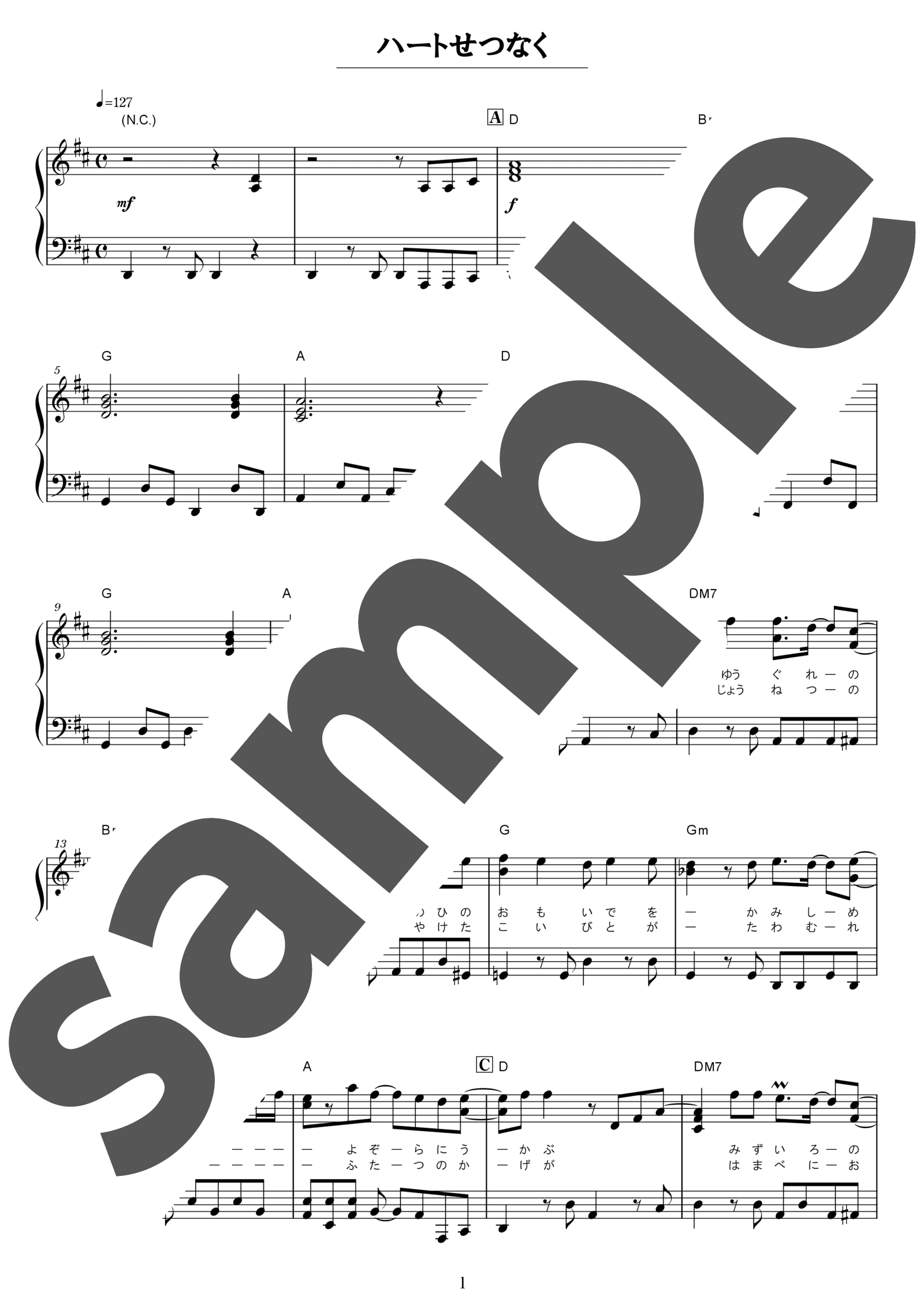 サザンオールスターズのキーボーディストとしても知られる原由子が歌う「ハートせつなく」。作詞・作曲は桑田佳祐によるもので、切ない失恋の想いと軽やかなポップスのリズムがやさしく溶け合った一曲です。ピアノソロ中級アレンジでは、どこかににじむ切なさとポップな曲調を大切に、全体的に重くならないような演奏を心掛けましょう。Dからのメロディは8分休符を大切に、しっかり同じ長さで休みましょう。