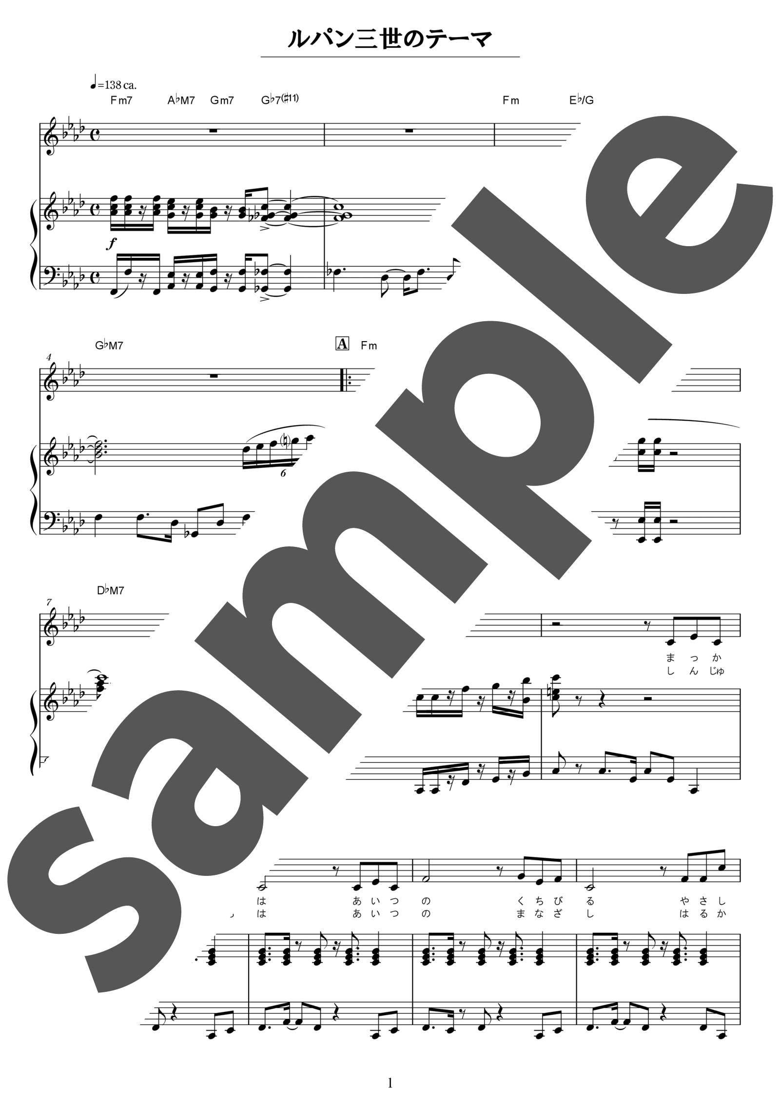 「ルパン三世」シリーズのオープニング曲です。こちらは第2シーズンのオープニング曲にあたります。ジャズ調のサウンドにより、アニメのスリリングでスタイリッシュな雰囲気を見事に表現しており、特に、ピート・マック・ジュニア(藤原喜久男)のハードボイルドな歌声が、ルパンのキャラクターにぴったり合った雰囲気を醸し出しています。弾き語りでは、原曲の軽快さを活かすことがポイントです。Bからの右手のコードをそのまま鳴らしてしまうと、不思議な響きが強くなりすぎて全体のバランスが崩れるため、右手は可能な限り小さく鳴らすことを意識しましょう。