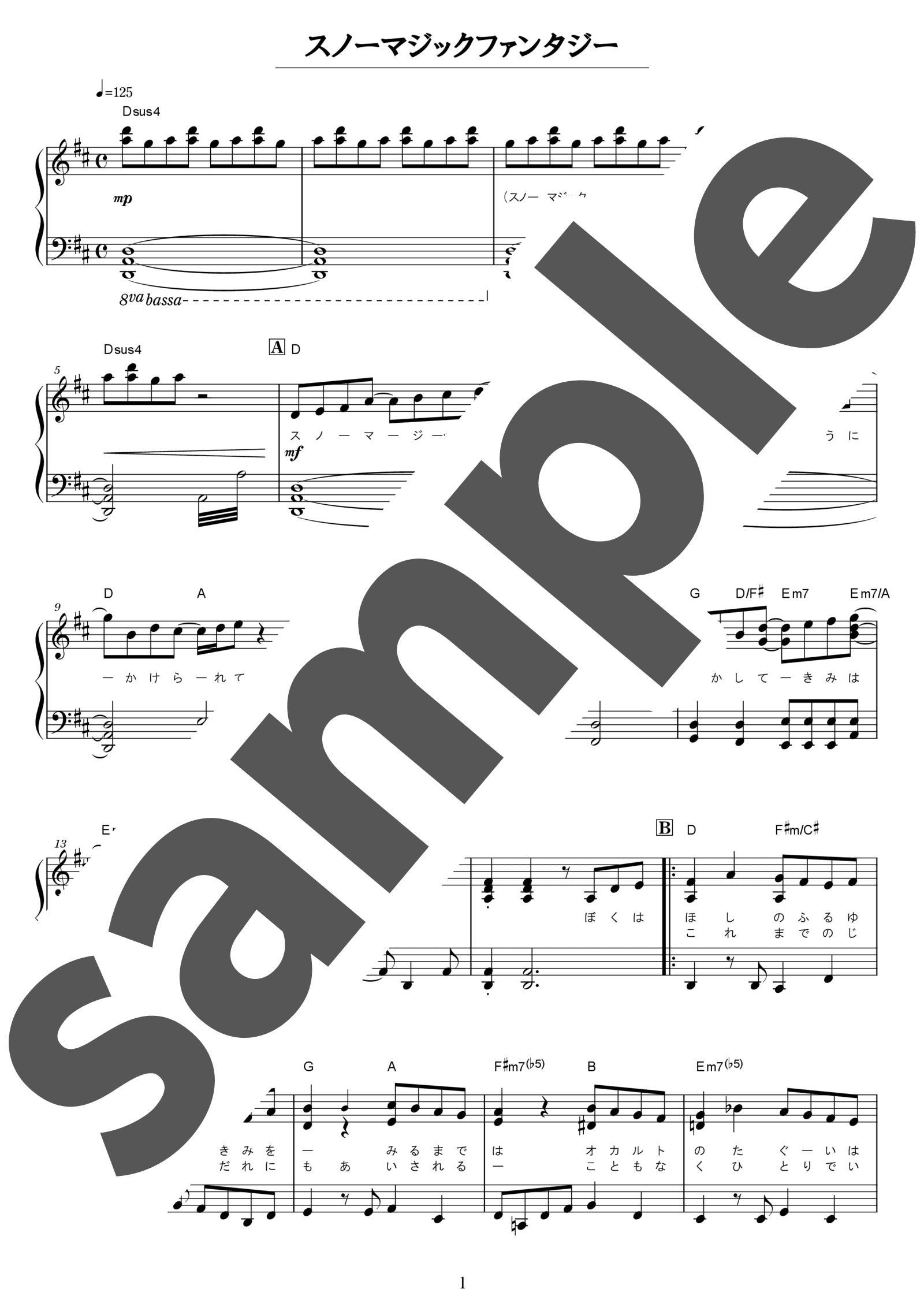 雪の降る夜に訪れる一瞬の奇跡のような恋を、幻想的なサウンドと繊細な言葉で描いた SEKAI NO OWARIの「スノーマジックファンタジー」。ゲームの物語が始まるような重厚なイントロから一転、歌が始まるとともにファンタジックで淡く光るようなサウンドが広がり、サビでは雪が舞い上がるように音が輝きを増していきます。ピアノだけでなく、チェンバロやオルガンのような響きなど、さまざまな鍵盤音色が使われており、楽曲の持つ物語性あふれるサウンドにつながっています。ピアノソロで演奏する際も、音色の変化を意識しながら、多彩な響きでファンタジックな世界を表現しましょう。