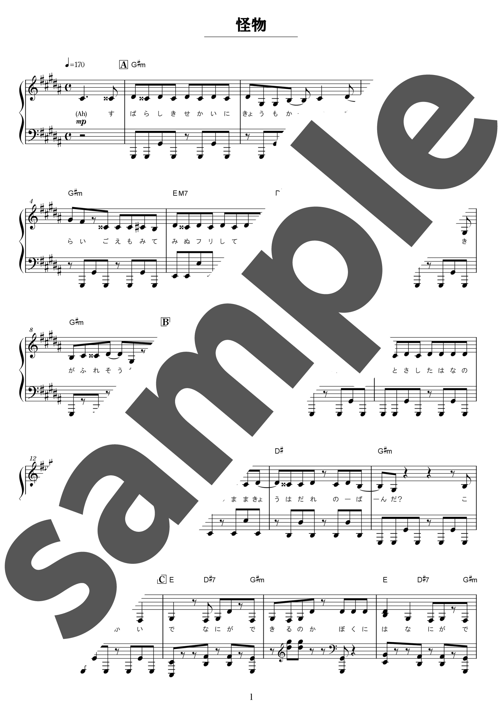 YOASOBIらしい文学的な表現と、エレクトロポップのクールさが絶妙に溶け合ったYOASOBIの「怪物」。疾走感のあるリズムとエレクトロなサウンドが駆け抜けるようなスリルを感じさせます。こちらのアレンジでは、原曲のスピード感と迫力をそのままにピアノ譜に再現しました。手の交差やオクターヴの連続跳躍などテクニカルな要素も多く、上級者向けの内容となっております。原曲の疾走感を、ピアノでぜひ体感してください。