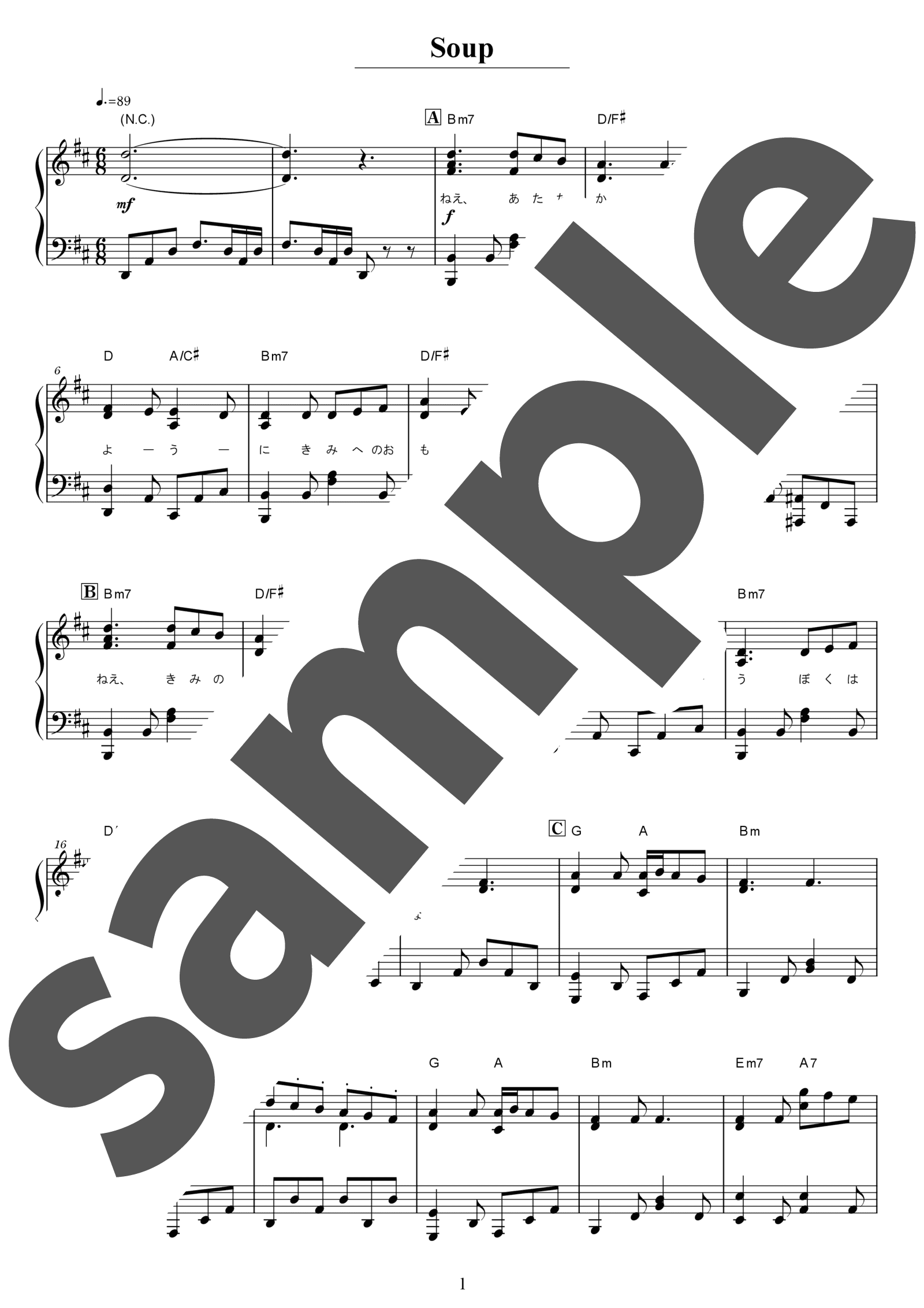 やわらかく包み込むような温かさが印象的な、Mrs. GREEN APPLEの「Soup」。ヴォーカル大森元貴さんのまっすぐな声が穏やかなテンポと透明感のあるハーモニーと溶け合い、恋愛に不安になる心をそっと温めてくれます。楽曲の派手さを抑えた中にある温かさとやさしさを感じながら、そっと寄り添うような音を意識して演奏すると、この曲の魅力が自然に伝わります。ハーモニーの変化を丁寧に感じ取り、強弱をつけて立体感を出しましょう。