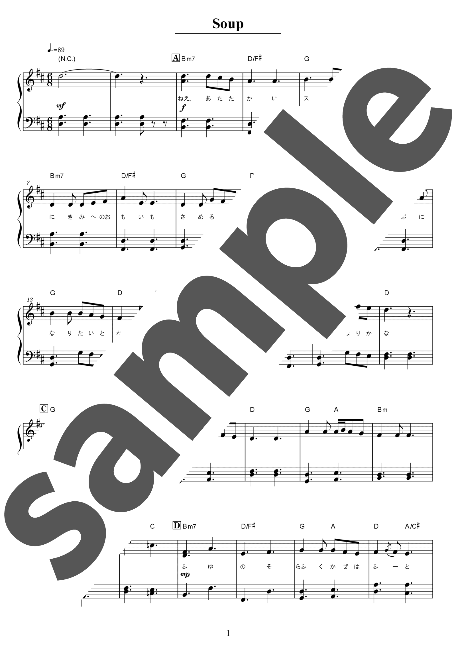 やわらかく包み込むような温かさが印象的な、Mrs. GREEN APPLEの「Soup」。ヴォーカル大森元貴さんのまっすぐな声が穏やかなテンポと透明感のあるハーモニーと溶け合い、恋愛に不安になる心をそっと温めてくれます。Iからの左手は指先を使ってギターの軽やかな響きを想像して演奏しましょう。原曲のテンポにこだわらずゆったりとした流れの中で、曲のあたたかい空気感を感じながら演奏しましょう。