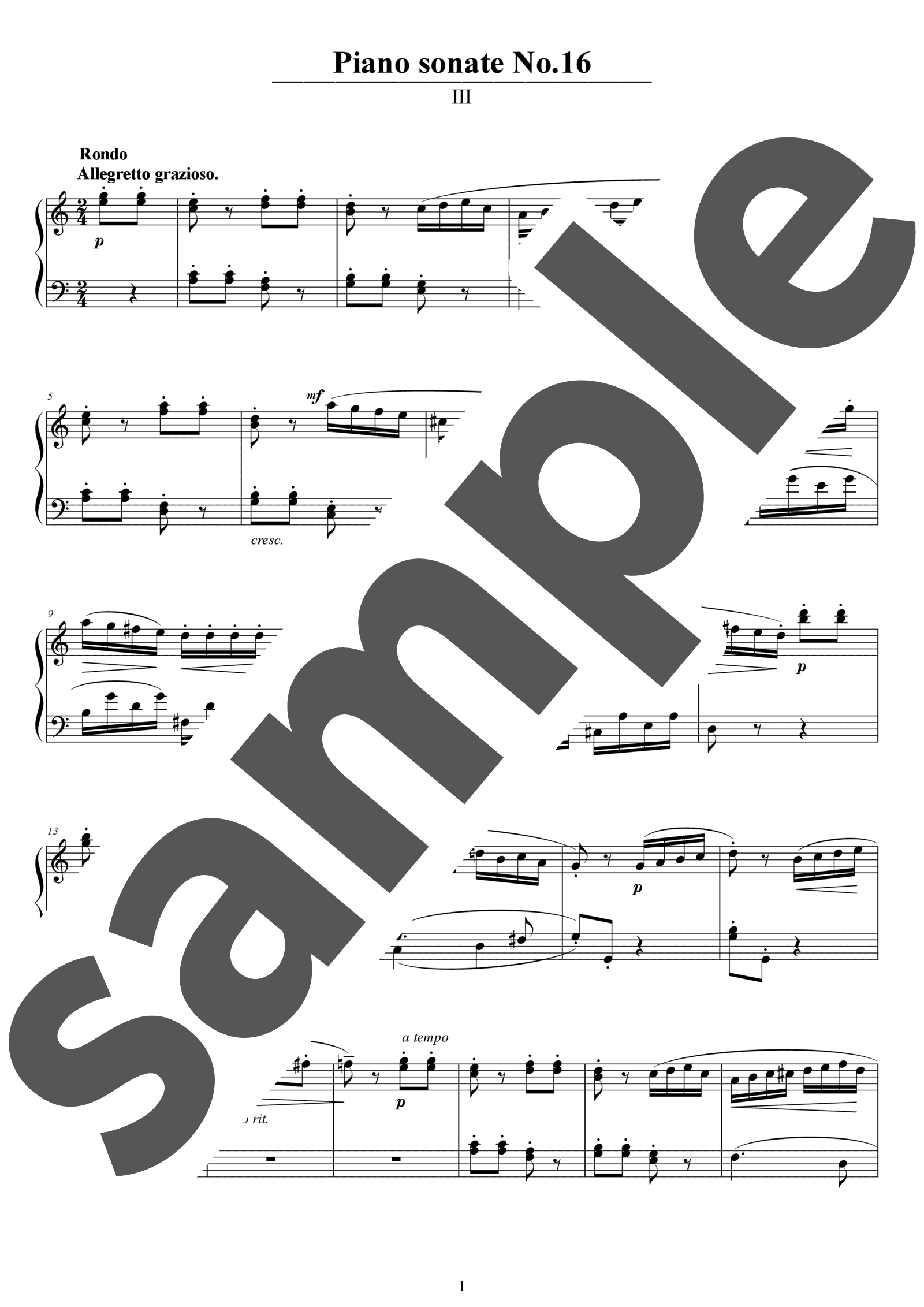 ピアノ・ソナタ 第15番 ハ長調 第3楽章 / ピアノソロ 中上級