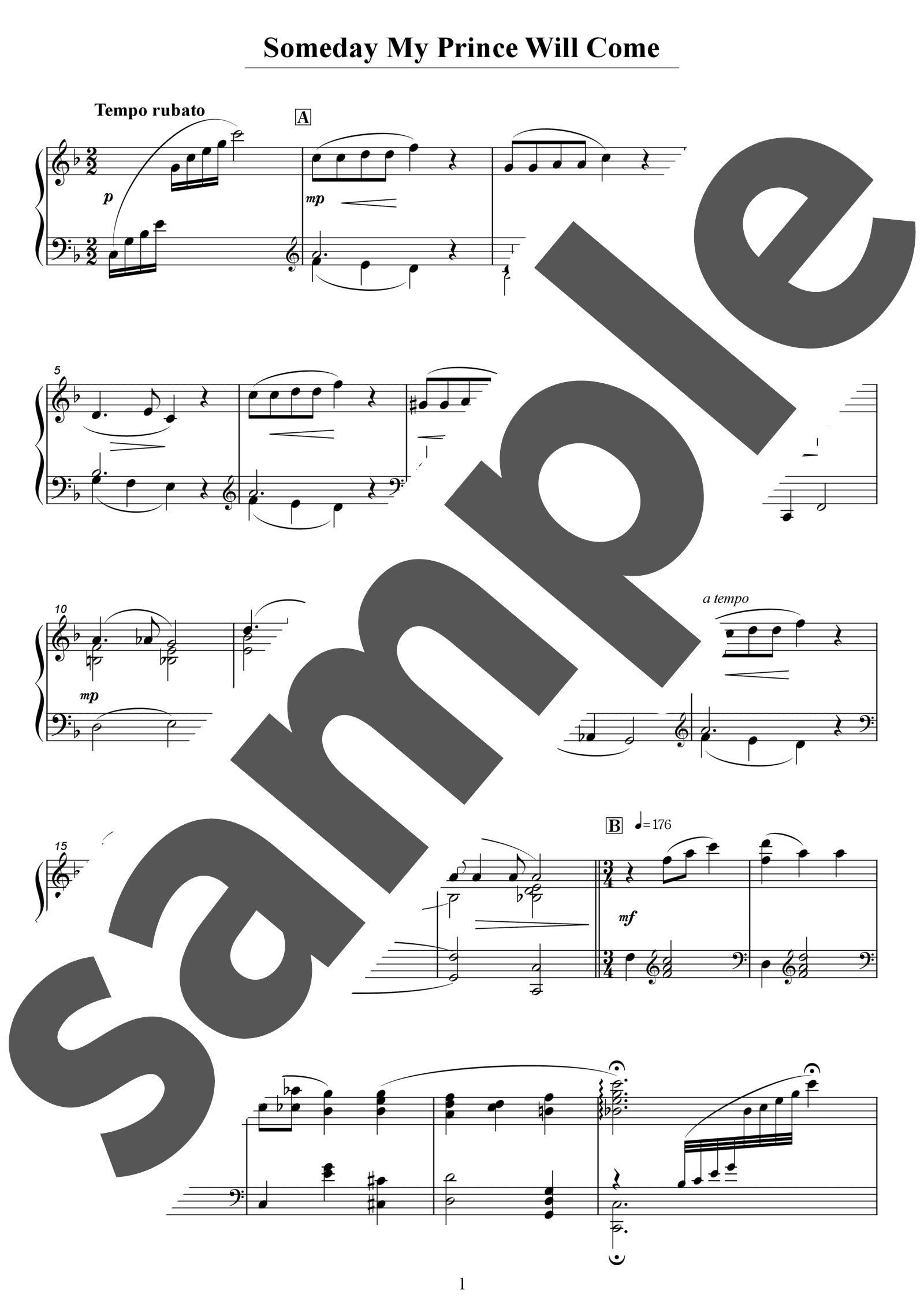 ディズニー映画「白雪姫」の挿入歌として知られる名曲「いつか王子様が」。白雪姫がうっとりと歌い上げる旋律に、クラシカルで柔らかなオーケストラの伴奏が寄り添い、物語の世界観をやさしく彩ります。こちらのピアノソロ中上級アレンジでは、ゆったりと歌うメロディを大切にしつつ、オーケストラの多彩な響きを想像しながら音を重ねていきましょう。左手はワルツの三拍子を感じながら、強拍と弱拍を意識して演奏しましょう。