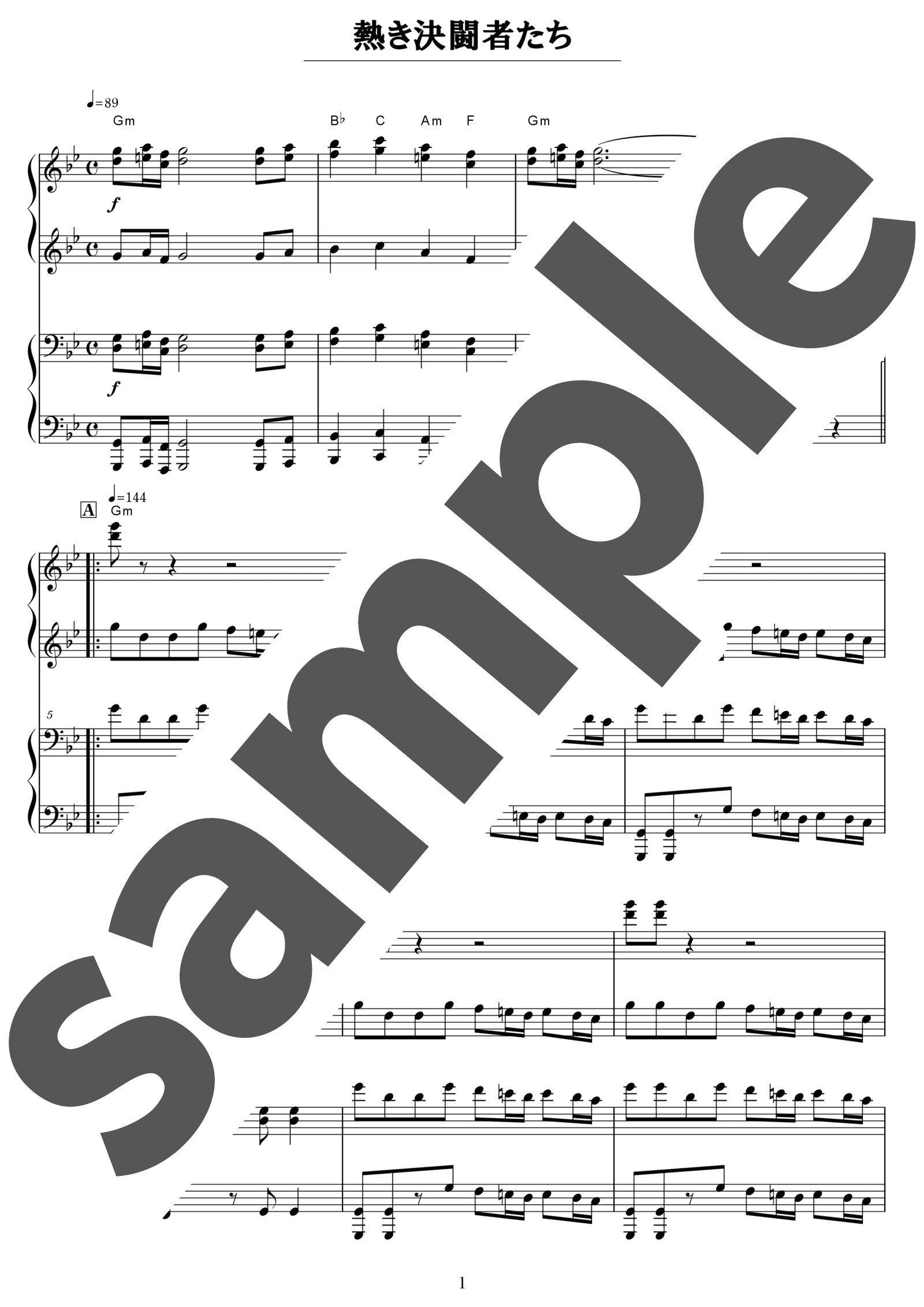 アニメ「遊☆戯☆王デュエルモンスターズ」を象徴する楽曲、「熱き決闘者たち」。短いモチーフの反復と、切れ味のあるリズムが特徴で、音楽そのものが攻防の応酬を描いているかのような構成です。旋律はシンプルながらも力強く、テンポ感とアクセントの置き方によって、緊張の高まりが鮮明に表現されています。連弾アレンジでは、プリモの左手とセコンドの右手が同じメロディをユニゾンで奏でる場面があり、連弾ならではの迫力が楽しめます。