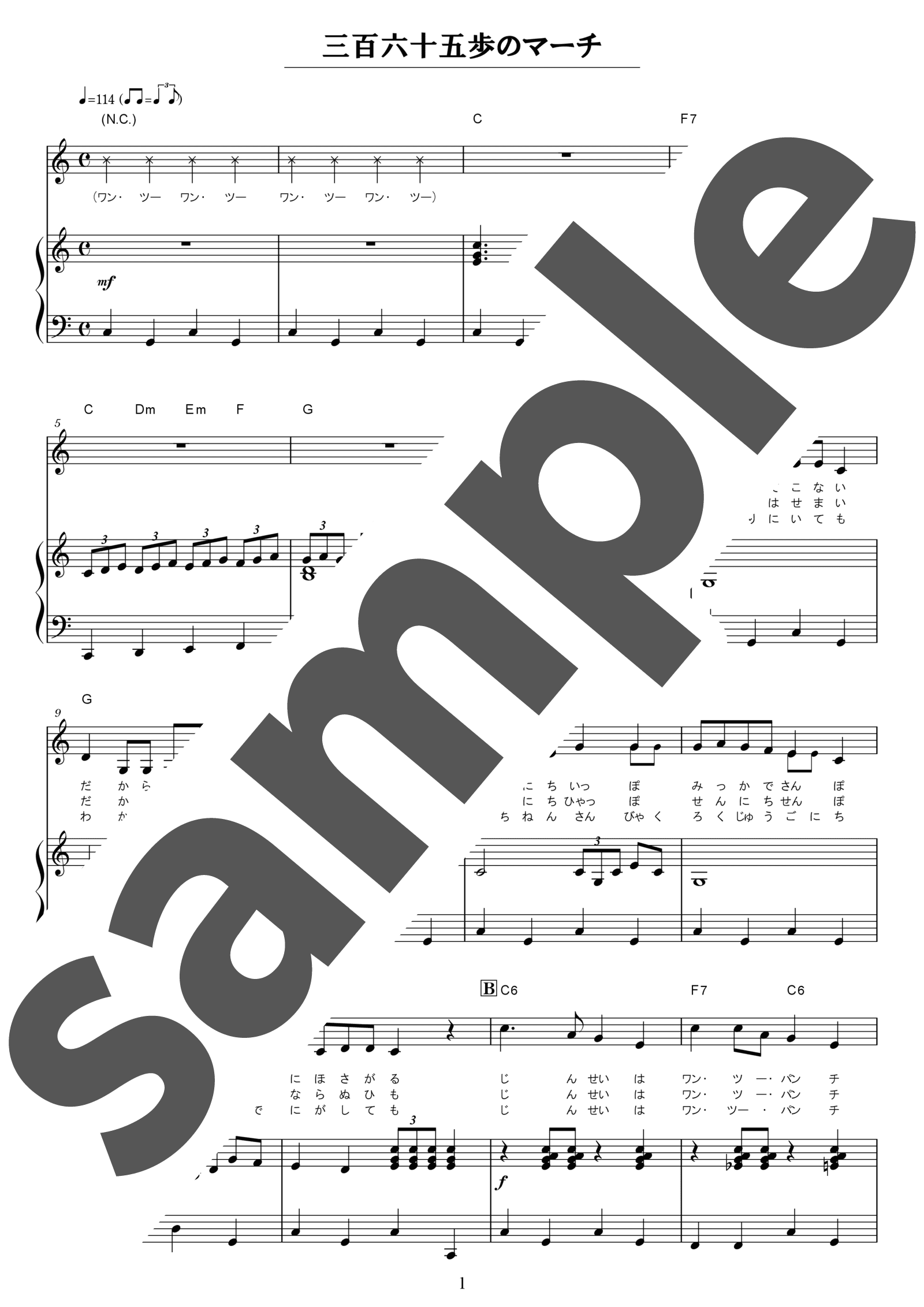 行進曲のような軽快なリズムと親しみやすいメロディーが特徴で、世代を超えて今なお愛され続けている昭和の名曲「三百六十五歩のマーチ」。「一日一歩、三日で三歩」というフレーズは、聴く人に元気や勇気を与えてくれます。弾き語りアレンジでは、明確な拍子感を意識しながら、フレーズの区切りやブレスの位置に気を付けて歌いましょう。伴奏はマーチのリズムを意識しながら、歯切れの良いタッチで演奏し、一定のテンポを保つよう心がけましょう。