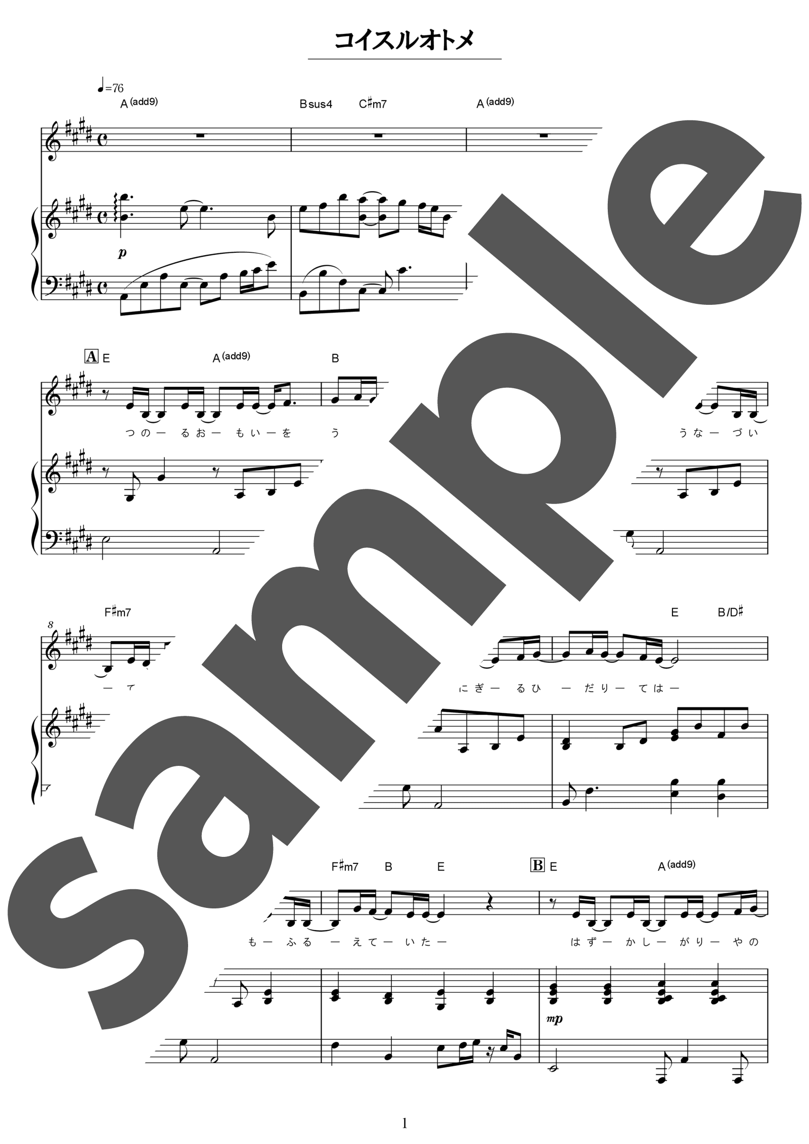 まっすぐでひたむきな恋心を、温かく優しい言葉とメロディで描いた、いきものがかりのラブソング「コイスルオトメ」。飾らない想いを素直に伝える歌詞と、やわらかなポップサウンドが重なり、聴く人の心に自然と寄り添うような魅力を持っています。サビに向かうにつれて少しずつ感情を高め、フレーズの流れで自然な盛り上がりを作ることを意識しましょう。伴奏では、間奏に見られる連打や早いパッセージにおいて、力まないように気を付けましょう。
