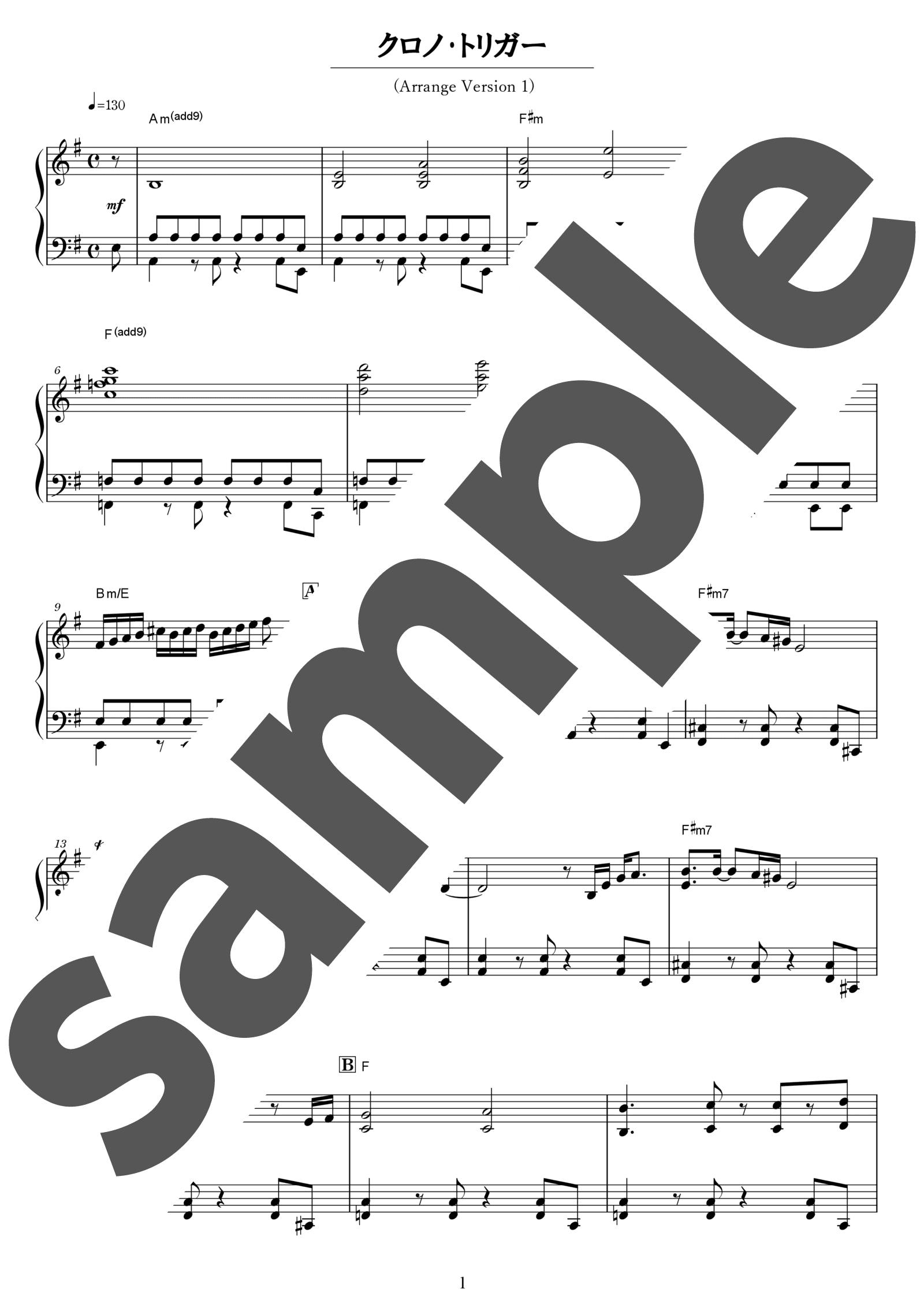 原作音楽を手掛けた光田康典による旋律は、どこか郷愁を帯びながらも、時空を超える冒険の壮大さを感じさせます。こちらは、オーケストラのインスト曲をピアノでも楽しめるソロアレンジにいたしました。右手は、弦の緩やかなうねりを感じさせるレガートでフレーズを表現し、左手は推進力のあるリズムを大切にし、重く刻まないようにしましょう。