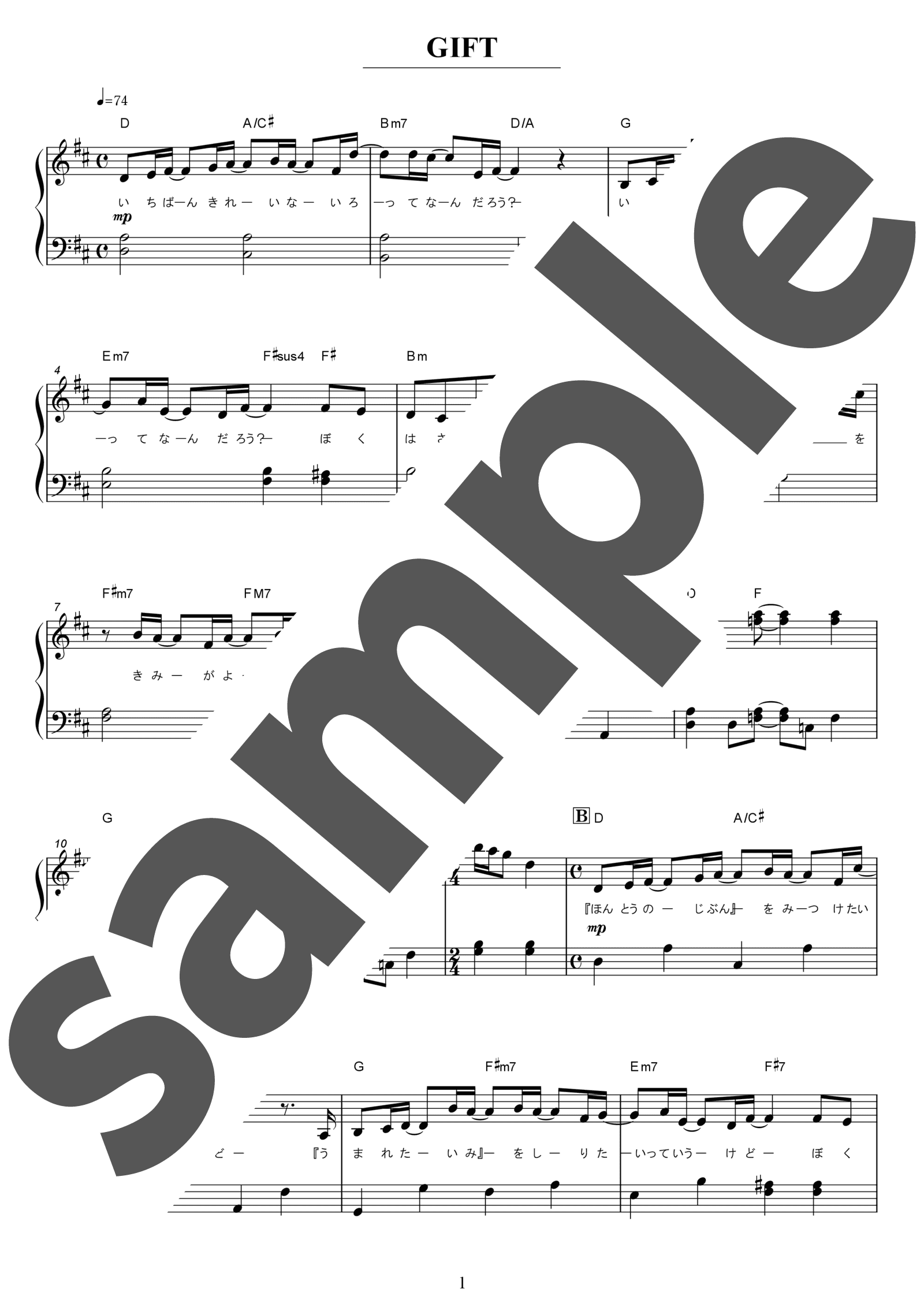 「一番きれいな色ってなんだろう」という歌い出しで始まるこの曲は、物事は白黒はっきりつくものばかりではなくその間には無限のグラデーションがあり、全ての存在を認めてその感謝を「GIFT(贈り物)」として歌った曲です。これぞ応援歌というような力強く訴えるサビは、聴く人を勇気づけ、そっと背中を押してくれます。左手のリズムは4分音符が中心ですが、メロディラインはヴォーカル桜井和寿さんの歌い方を忠実に再現したアレンジになっています。わかりづらいリズムもありますが、ゆっくりとしたテンポから確認しながら練習しましょう。