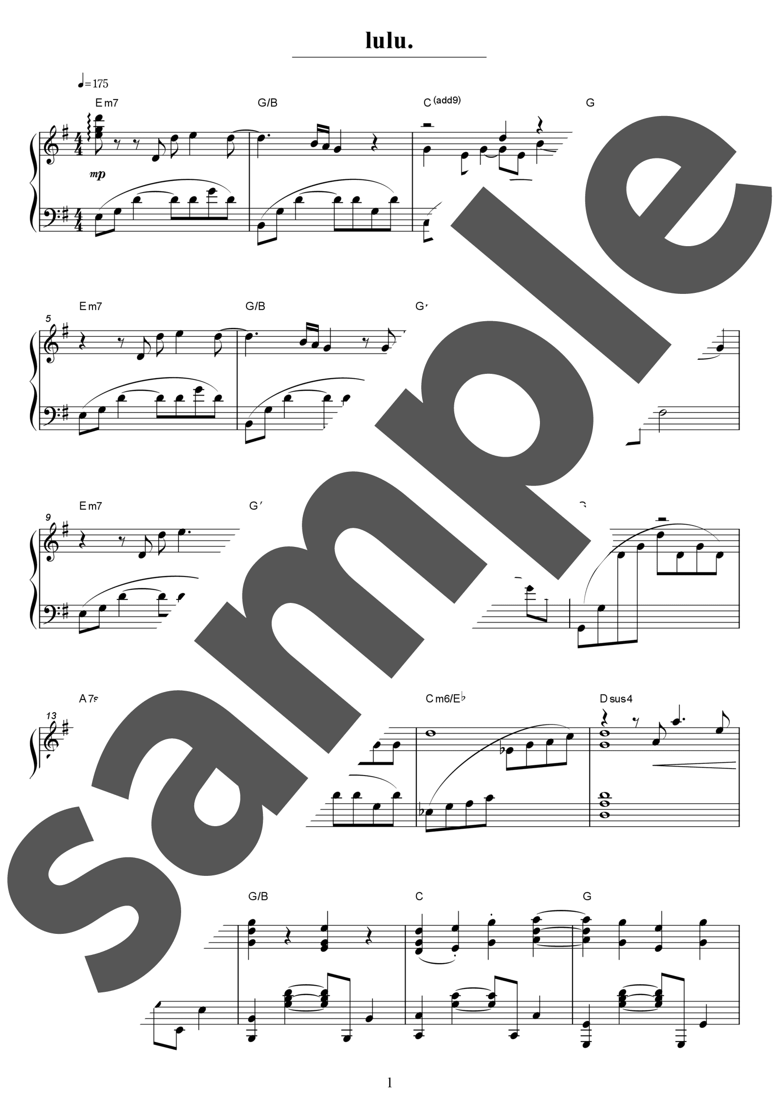 Mrs. GREEN APPLEの「lulu.」。厚みのある和声と伸びやかなメロディが重なり、スケール感と深い余韻を生み出しています。今回は華やかで豪奢な響きが印象的な上級アレンジです。左手には音域の広い跳躍が多く登場するため安定したリズムを保ち、特にサビでは旋律をしっかりと歌わせながら内声や伴奏とのバランスを丁寧に整えましょう。和音の響きを豊かに保ちつつ、フレーズの呼吸を感じて演奏することで、楽曲の透明感と壮大さをより魅力的に表現できます。