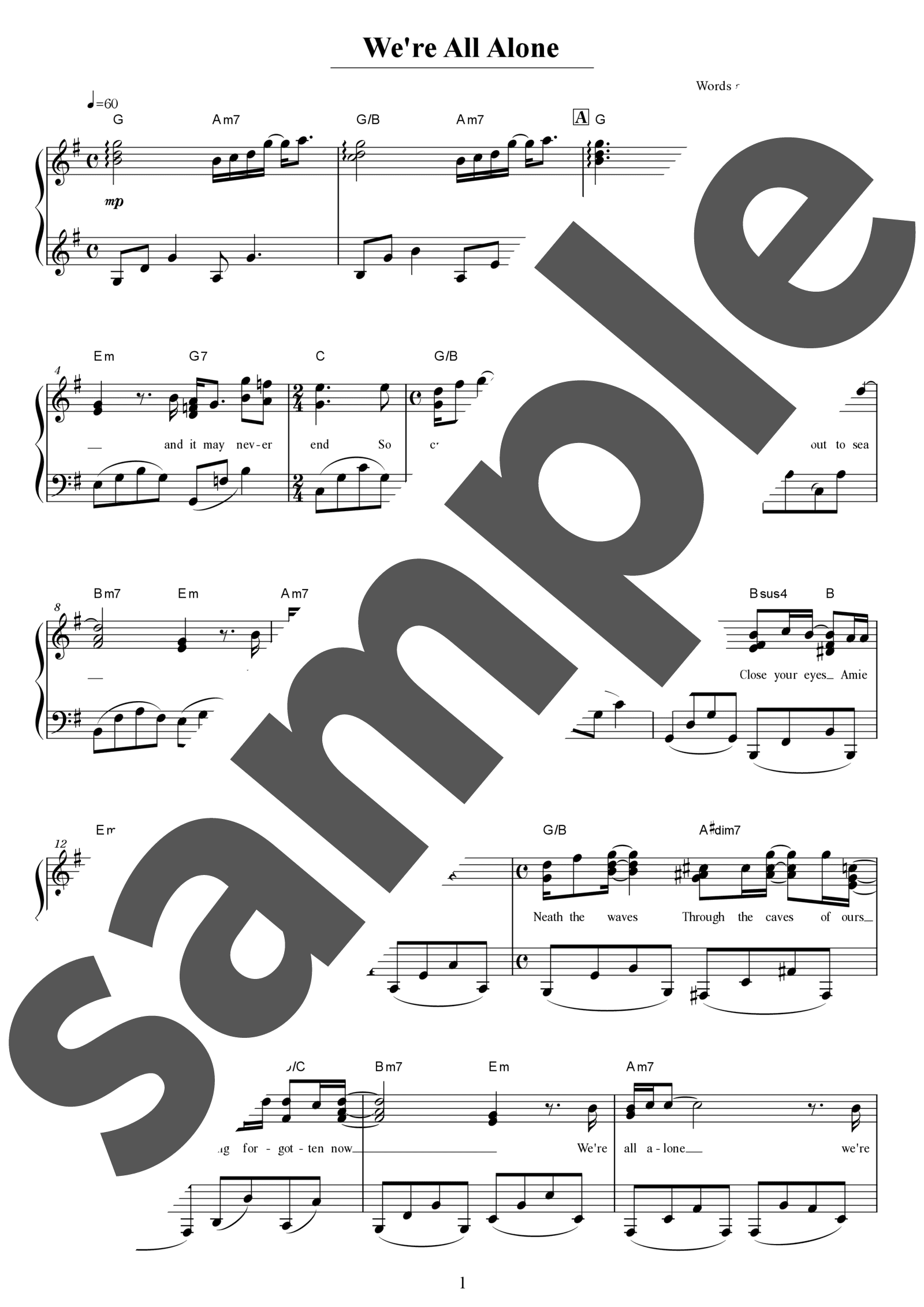 ボズ・スキャッグスが1976年に発表した、やさしく包み込むような雰囲気が魅力のバラードです。メロディの上に抜けるようなフレーズの終わりと切なさを感じさせるコード進行が見事に重なり、胸にじんわりと響く一曲です。タイトル「We’re All Alone」は「二人きり」とも「みんな独りぼっち」とも受け取れる言葉ですが、こうした複数の解釈ができるように歌詞が作られているそうです。こちらの中級アレンジでは、ハーモニーが加わったメロディに、伴奏は8分音符を基調とした定型のリズムで構成されており、華やかで演奏しやすいアレンジとなっています。