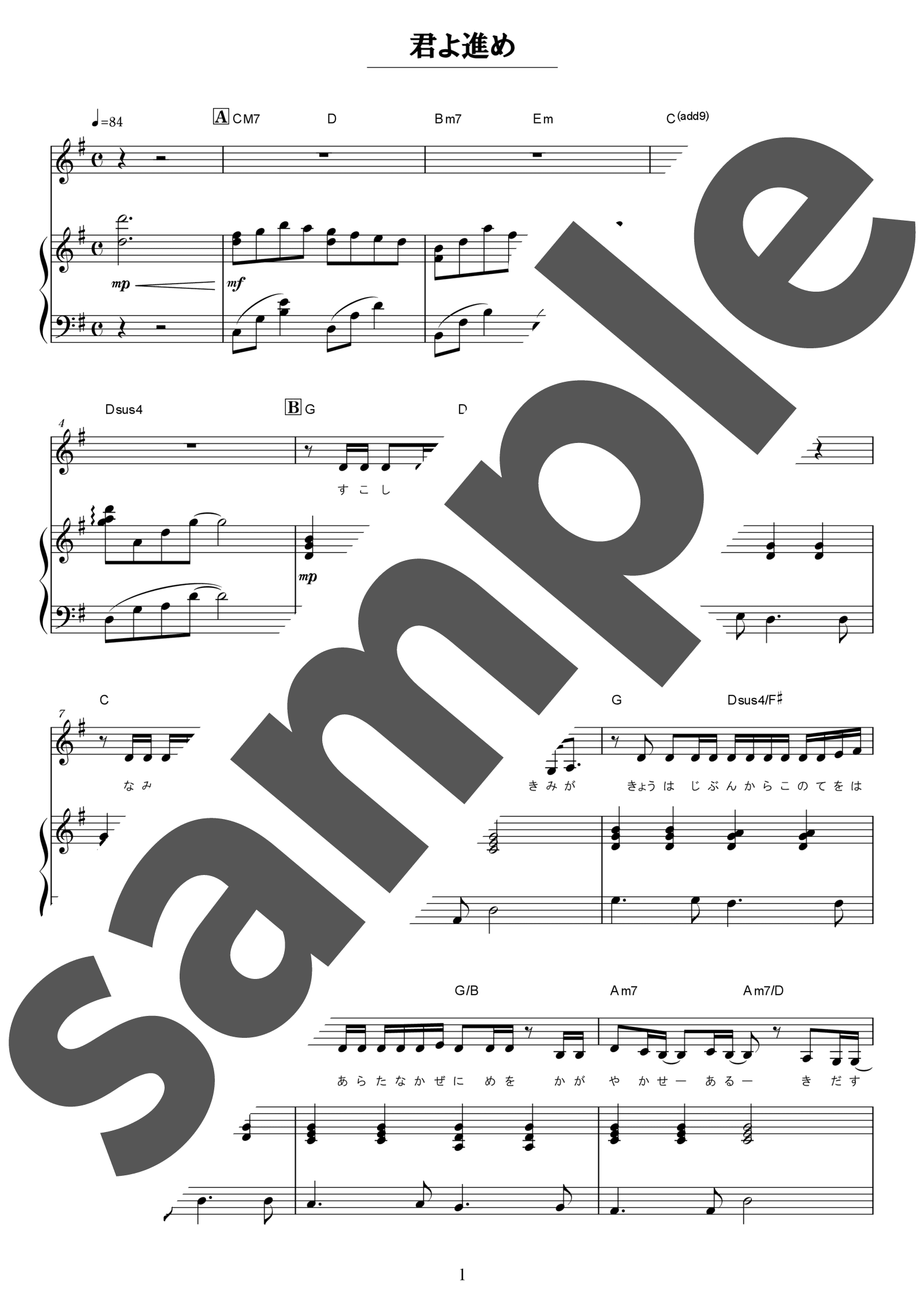 泣けるCMソングとして話題になった、シンガーソングライター藤田麻衣子の「君よ進め」。子どもを見守る母親の目線で描かれた歌詞は、多くの母親世代の共感を集め、思わず涙を誘うような温かなメッセージが込められています。楽曲の持つ繊細な響きの変化を大切にしながら、言葉一つひとつを丁寧に届けることを意識しましょう。メロディに同じ音が連続する場面では、言葉のニュアンスをしっかりと感じながら歌いましょう。また、伴奏は前奏や後奏ではロマンチックな曲想を意識し、やさしく響きを広げるように演奏しましょう。